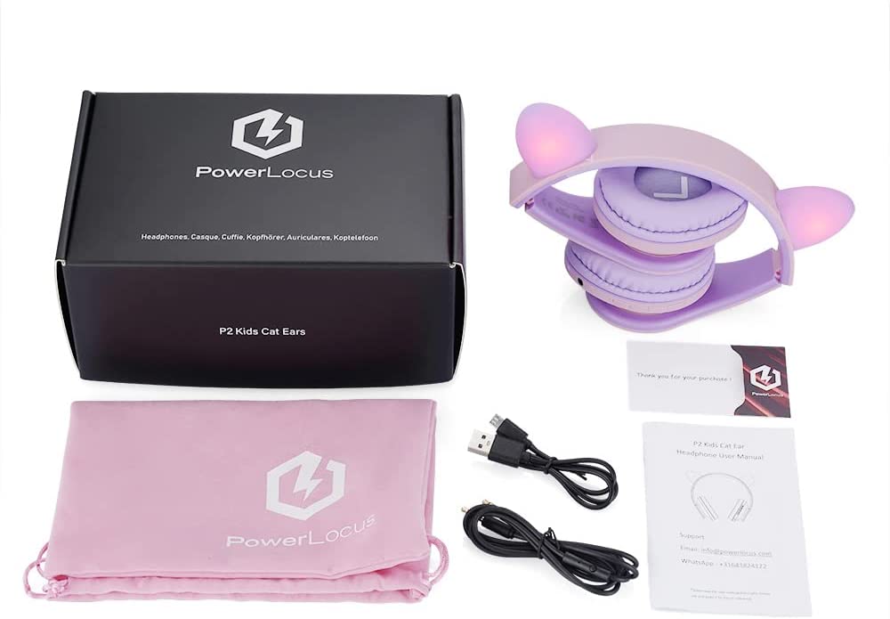 PowerLocus Kids Headphones Over-Ear, Bluetooth Wireless Headphones for Kids,with Microphone, Safe 85DB Volume Limited, Foldable with Carry Case, Audio Cable, Micro SD mode for Online Classes,PC,Phones